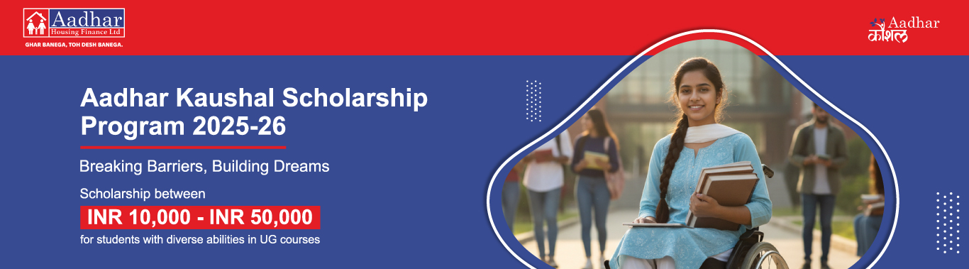 Aadhar Kaushal Scholarship Program 2025-26: वे सभी दिव्यांग मेधावी विद्यार्थी जो कि, सामान्य और प्रोफेशनल यूजी कोर्सेज कर रहे है और अपने शैक्षणिक विकास व शैक्षणिक जरुरतों की पूर्ति हेतु INR 10,000 to INR 50,000 की स्कॉलरशिप प्राप्त करना चाहते है तो आपके लिए अच्छी खबर है कि, Aadhar Housing Finance Limited (AHFL) द्धारा Aadhar Kaushal Scholarship Program 2025-26 को लांच किया है जिसमे अप्लाई करके आप आसानी से अपने शैक्षणिक विकास के लिए स्कॉलरशिप प्राप्त कर सकते है।