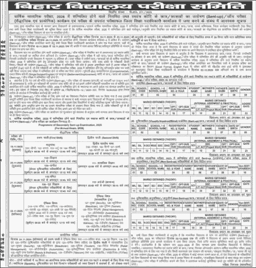 | Bihar Board 10th Sent Up Exam 2026 Date of Theoratical Exam ( सैद्धान्तिक परीक्षा ) | 19th November, 2025 To 22nd November, 2025 |