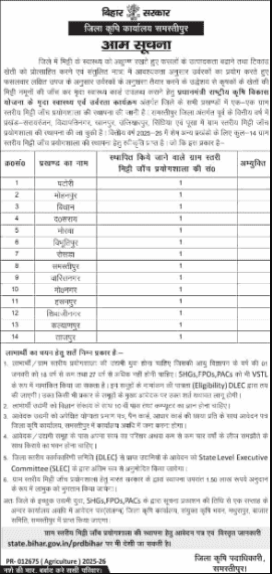 | Who Can Apply? | Bihar State Youth / SHGs / FPOs / PACs Can Apply. |