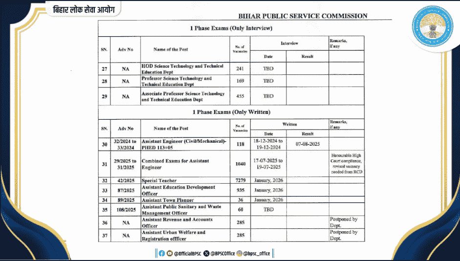 प्रश्न – क्या BPSC AEDO Exam Date 2025 को जारी कर दिया गया है?