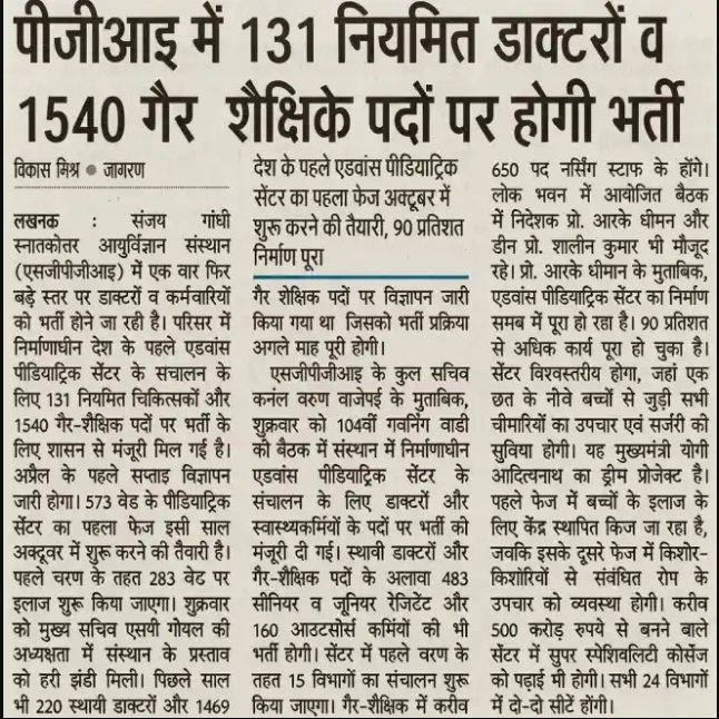 | Name of the Article | SGPGI Faculty & Non-Faculty Recruitment 2026 |