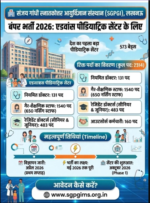 अपने इस आर्टिकल मे हम, आप सभी उम्मीदवारों सहित आवेदको का हार्दिक स्वागत करना चाहते है जो कि, SGPGIMS मे फैकल्टी और नॉन फैकल्टी के अलग – अलग पदों पर नौकरी प्राप्त करके अपना करियर सेट व सिक्योर करना चाहते है उन्हें हम, इस आर्टिकल की मदद से विस्तार से SGPGI Faculty & Non-Faculty Recruitment 2026 को लेकर तैयार रिपोर्ट के बारे मे बतायेगें जिसके लिए आपको धैर्यपूर्वपक इस आर्टिकल को पढ़ना होगा ताकि आप पूरी – पूरी जानाकरी प्राप्त कर सकें।